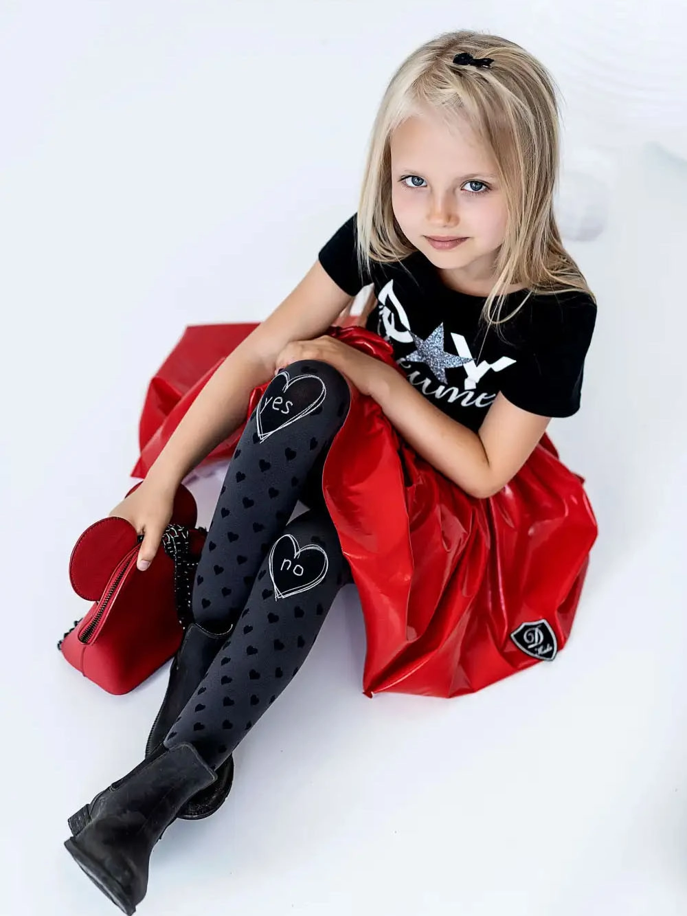 Uroczy wzór w serduszka – dodaje dziewczęcego charakteru każdej stylizacji.