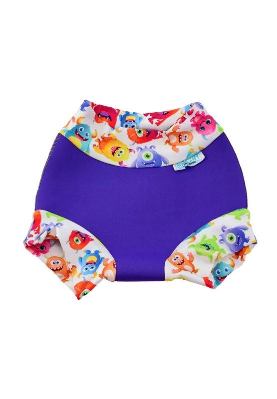 Zapewnij swojemu dziecku wyjątkowy komfort i ochronę podczas wodnych zabaw! Pieluszka wielorazowa Swim Nappy w intensywnym fioletowym kolorze to prawdziwa eksplozja radości. Jej zabawne wykończenia z kolorowymi potworkami dodają uroku, a wysokiej jakości neopren gwarantuje trwałość i wygodę. To idealny wybór na basen, plażę i wakacyjne wodne przygody!